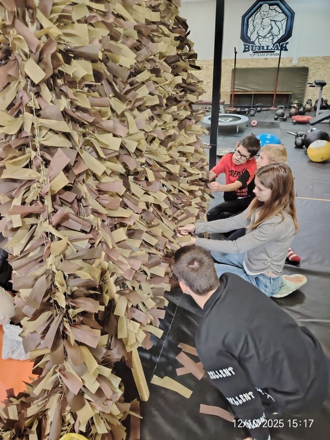 Побыстрее собравшись, ребята вместе с воспитателями отправились в клуб «Бурлак», где очень весело и продуктивно провели время: в программе были и спортивные упражнения от BURLAK, и командные игры в лазертаг-клубе «На Берлин», и веселые танцы с ростовыми куклами. А ещё ребята учились плести маскировочные сети, рисовали открытки для бойцов СВО и писали на них теплые сердечные пожелания, которые будут отправлены солдатам, чтобы поддержать их боевой дух.