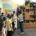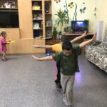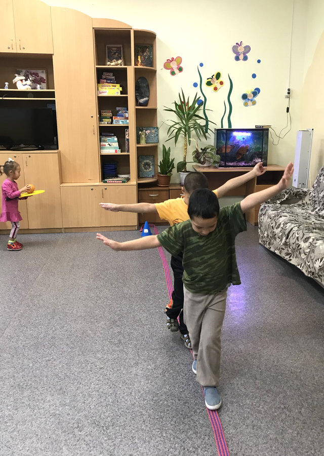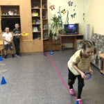 Ребята старательно преодолевали все трудности, ловко пробирались по «узкой тропинке» из ленты, растянутой по полу, переносили мячики на ракетке, балансируя на одной ноге, перепрыгивали с «кочки на кочку» от старта до финиша. От начала до конца мероприятие сопровождалось зажигательной, ритмичной музыкой и, конечно, радостными, позитивными эмоциями.