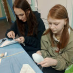 Участники занятия узнали об особенностях интерьерной игрушки, состоящей из нескольких деталей, самостоятельно выполнили перевод выкройки на ткань, приступили к шитью и набивке деталей.