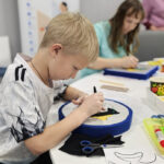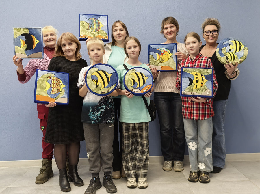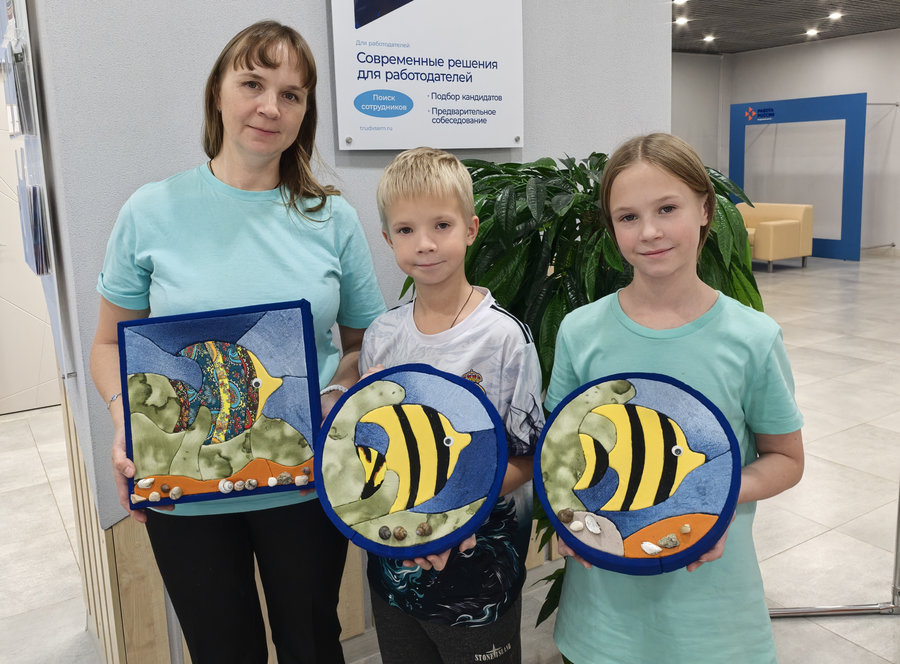 И дети, и взрослые с большим воодушевлением приступили к работе! А наши опытные мастера Ольга Геннадьевна и Ирина Борисовна поддерживали всех. В итоге, каждый участник создал свое уникальное панно, на котором ожила яркая пестрая рыбка, и волнующееся море, и песчаное дно с ракушками! А совместное творчество доставило семьям с детьми массу положительных эмоций.