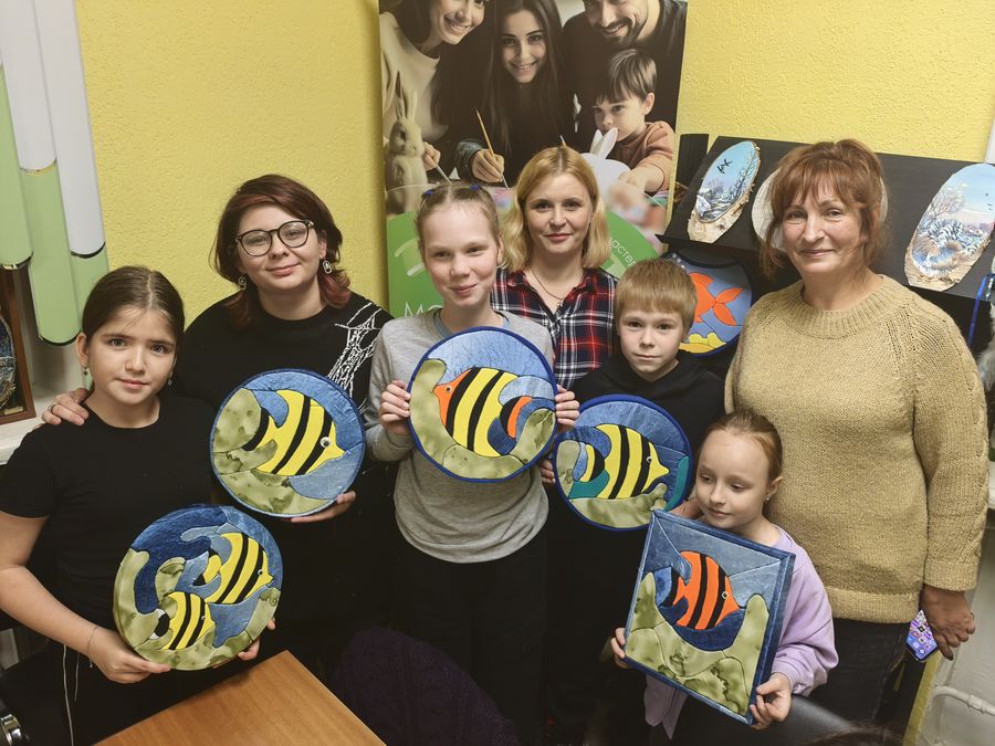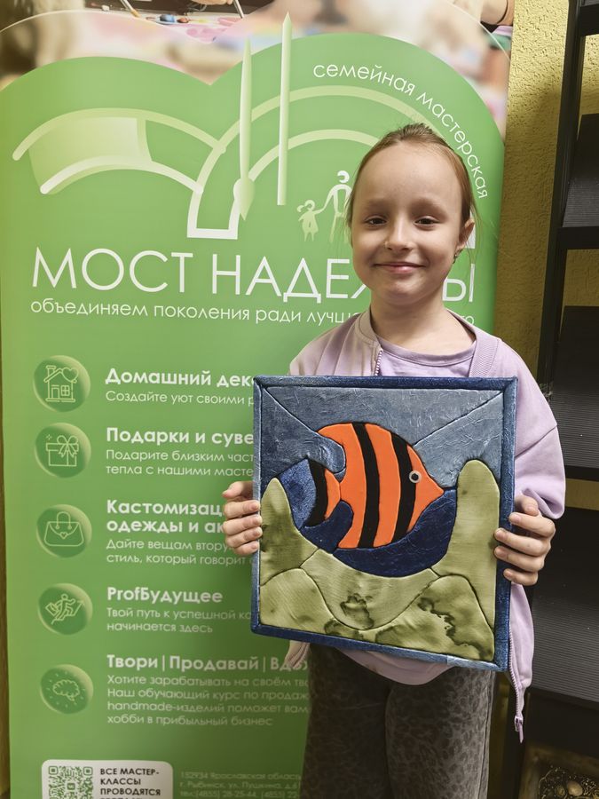 15 октября в нашей семейной мастерской «Мост надежды» было по-настоящему творчески! Прошёл наш мастер-класс по созданию панно «Рыбка» в удивительной технике кинусайга. Что такое кинусайга? Это искусство создания картин из лоскутков ткани без иголки!