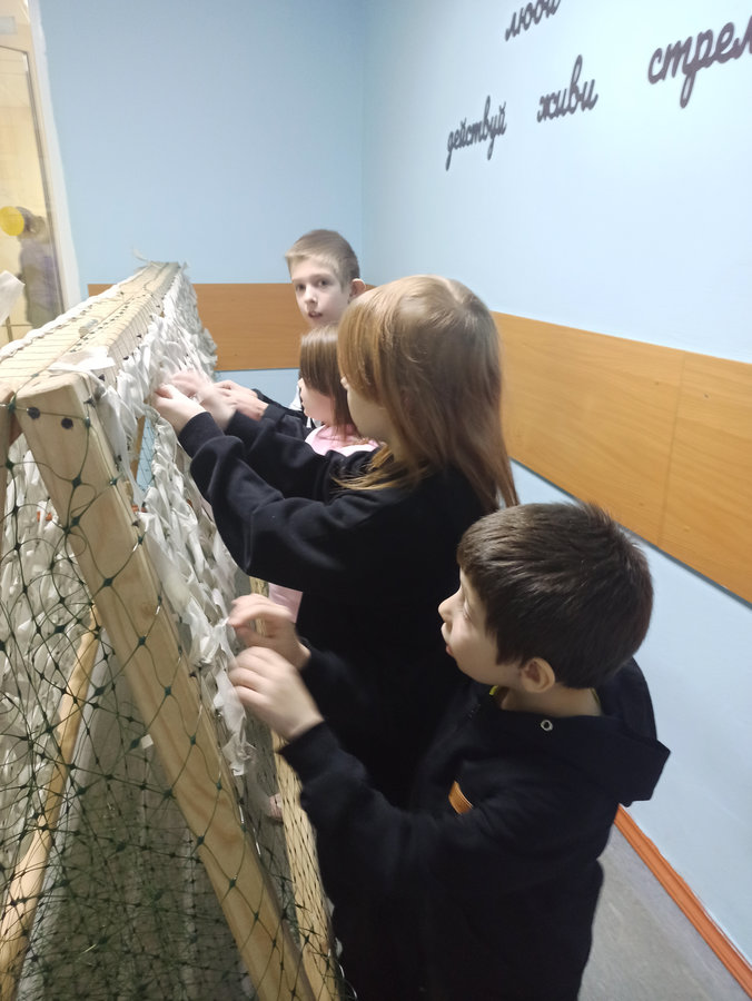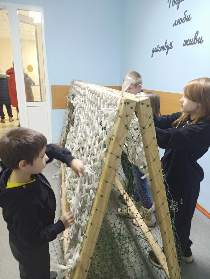 Воспитанники приемного отделения приняли участие в плетении сетей для защиты военной техники на СВО. Этому умению ребят обучили сотрудники Рыбинского психоневрологического интерната, куда наша волонтерская команда, состоящая из детей и взрослых, приходит регулярно для общения и проведения мастер-классов.