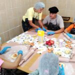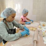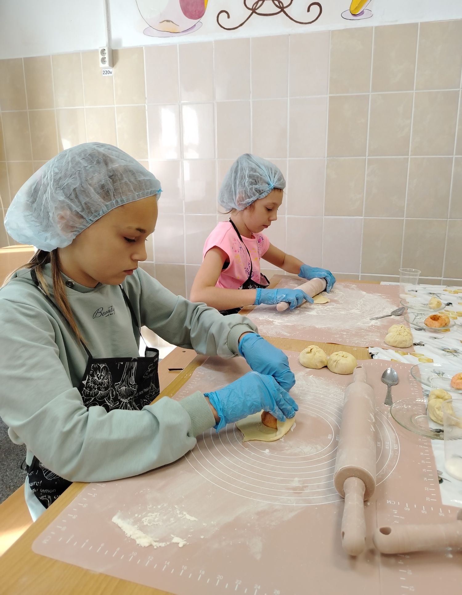 Участники мастер-класса тщательно раскатывали тесто, формировали свои плюшки, раскладывали их на противень ровными рядочками.