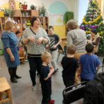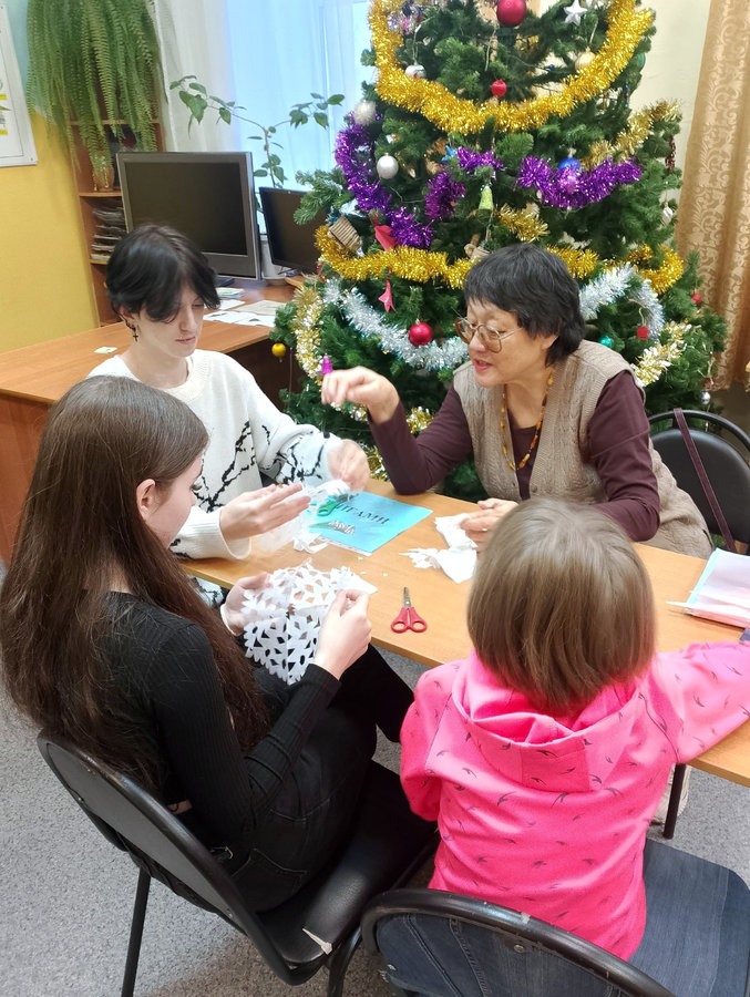 Дети младшей и старшей группы погрузились в атмосферу мероприятия, насыщенного разного рода творческими активностями: ребята раскрашивали бумажный символ наступающего года – лошадку, отгадывали зимние загадки, создавали новогоднюю открытку в технике оригами, вырезали по образцу снежинки.