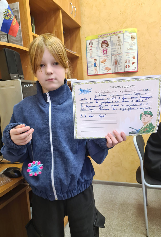 В рамках акции «Подарок солдату: письмо и талисман» наши воспитанники приготовили бойцам СВО специальные послания, стилизованные под письма-треугольники Великой Отечественной войны. Ребята выразили благодарность солдатам за их отвагу и смелость в боях.